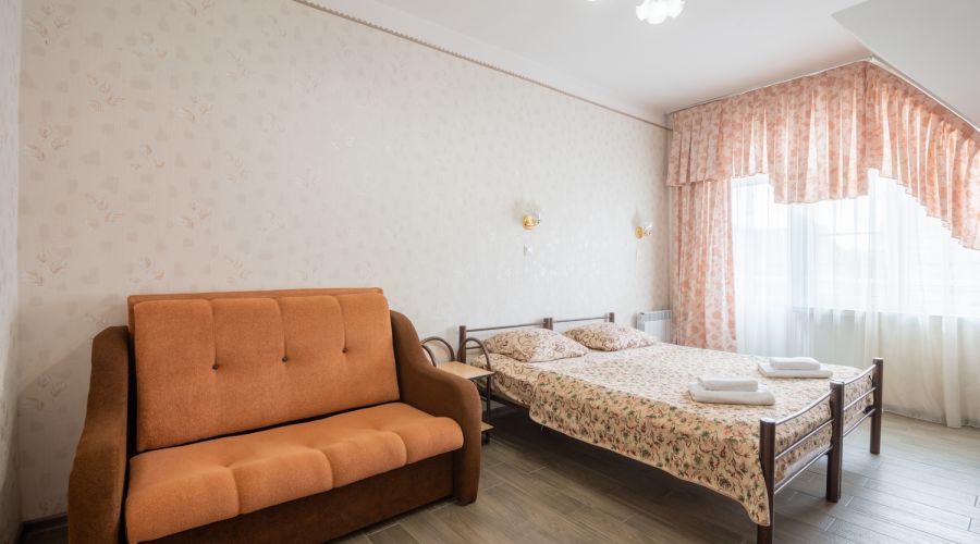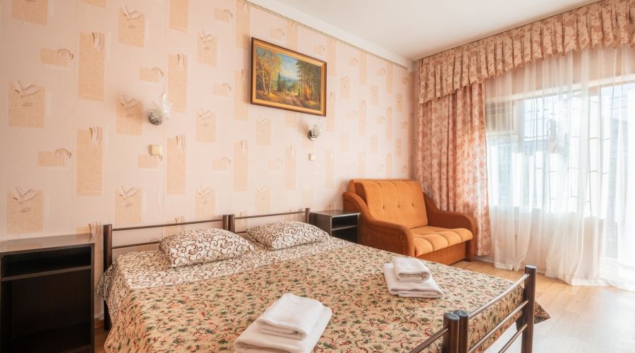 | Комфорт 3-местный | 20 кв.м. | 3 чел. | Балкон, Мебель (диван, зеркало, кровать двуспальная, прикроватные тумбочки, столик туалетный, шкаф),... | |