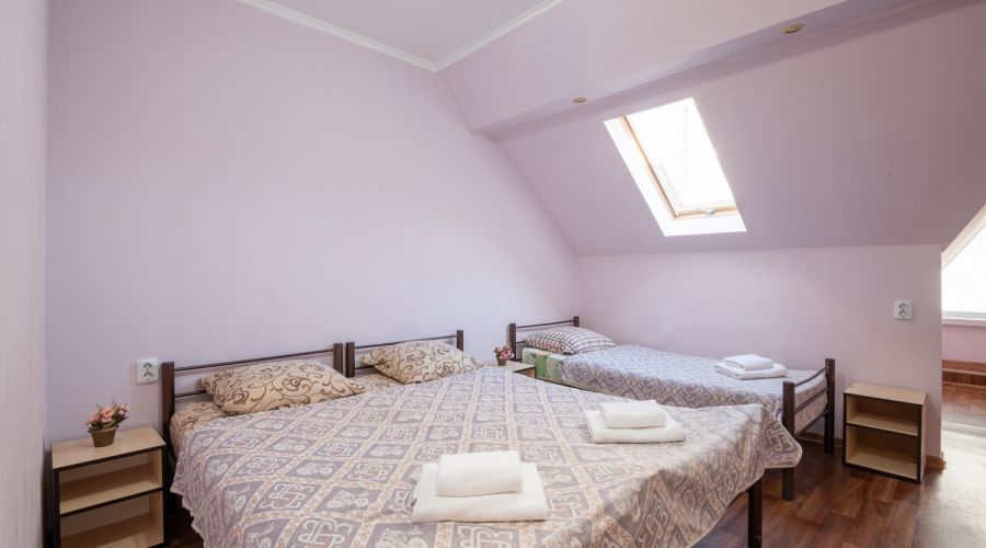 | Мансарда 3-местный | 15 кв.м. | 3 чел. | Мебель (вешалка, диван, зеркало, кровать двуспальная, кровать односпальная, прикроватные тумбочки, с... | |